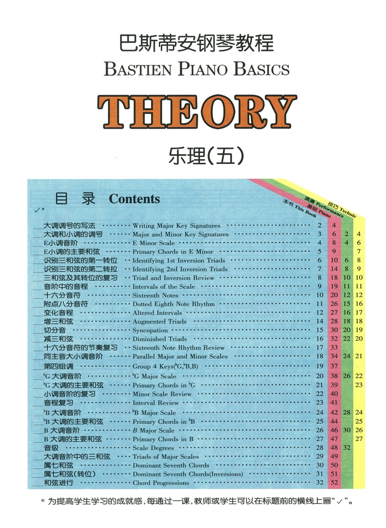 《巴斯蒂安钢琴教程(5)(套装共5册)》包括《巴斯蒂安钢琴教程(5):基础》、《巴斯蒂安钢琴教程(5):乐理》、《巴斯蒂安钢琴教程(5):技巧》、《巴斯蒂安钢琴教程(5):视奏》、《巴斯蒂安钢琴教程(5):演奏》共5册。是特别为初学钢琴的学生,能够正确学习钢琴演奏基础而设计的一套有趣的、内容全面的钢琴教材。精心安排的学习顺序能够平衡学生各方面的学习进度;精心设计的全彩插图能够增强学生的学习兴趣,提高他们的学习效果。