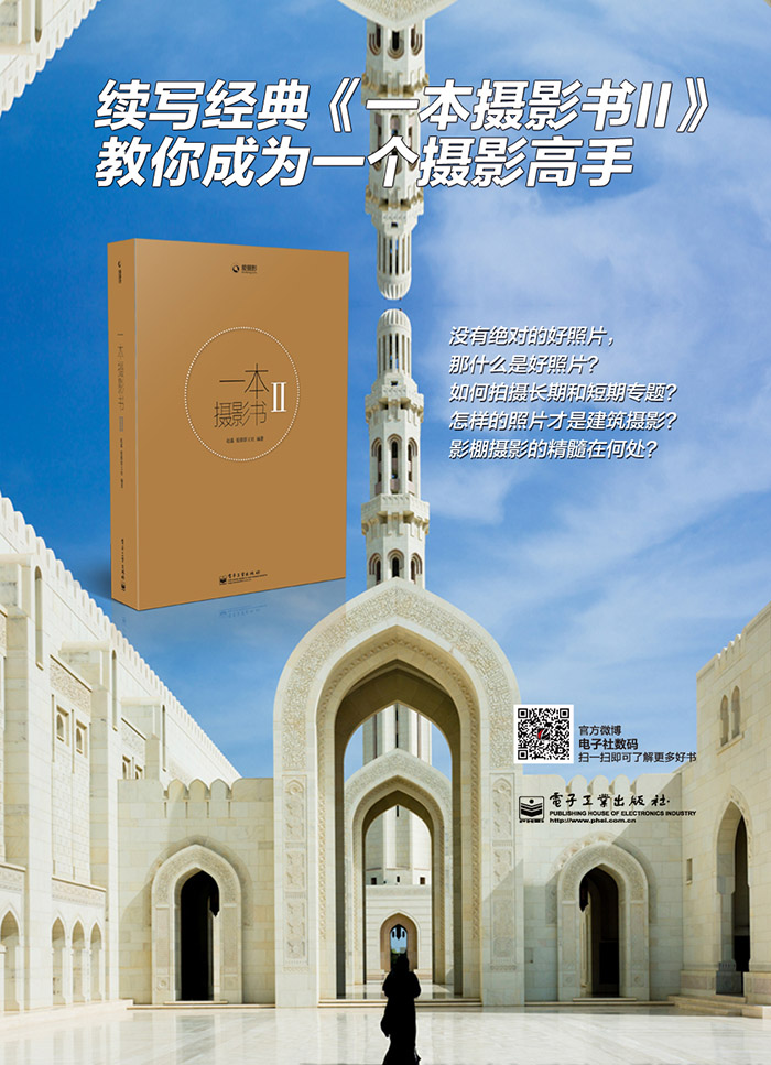 以上的问题都能在《一本摄影书 II》中找到,它是一本全新的进阶摄影教程。在《一本摄影书2(全彩)》中,我们为读者更进一步的剖析了专业摄影的脉络,并将《一本摄影书》中所无法扩展细说的高阶内容更加全面的呈现。其中,我们对于好照片的观念、摄影中的常见误区、照片的编辑理念与方法进行了综合性的阐述。而在具体的专业摄影细分门类方面,我们则对建筑摄影、个人纪实专题、高级肖像摄影、影室摄影、野生动物摄影、高级风光摄影等细分类别进行了全面而系统的讲解。当然这其中还包含了我们对于这些门类的理解和感悟,通过一虚一实的内容结合,我们希望当你阅读完《一本摄影书 II》之后,能够拥有更加宽阔的视野,而不被传统的摄影小圈子所限制。