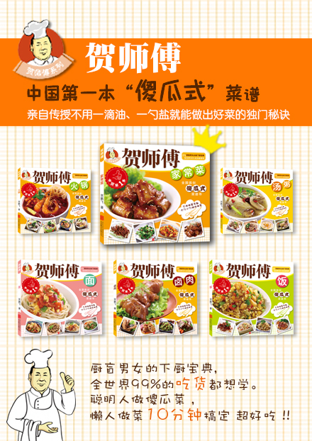 《贺师傅》系列图书开本小、厚薄适中,携带方便,可以直接带入厨房。
