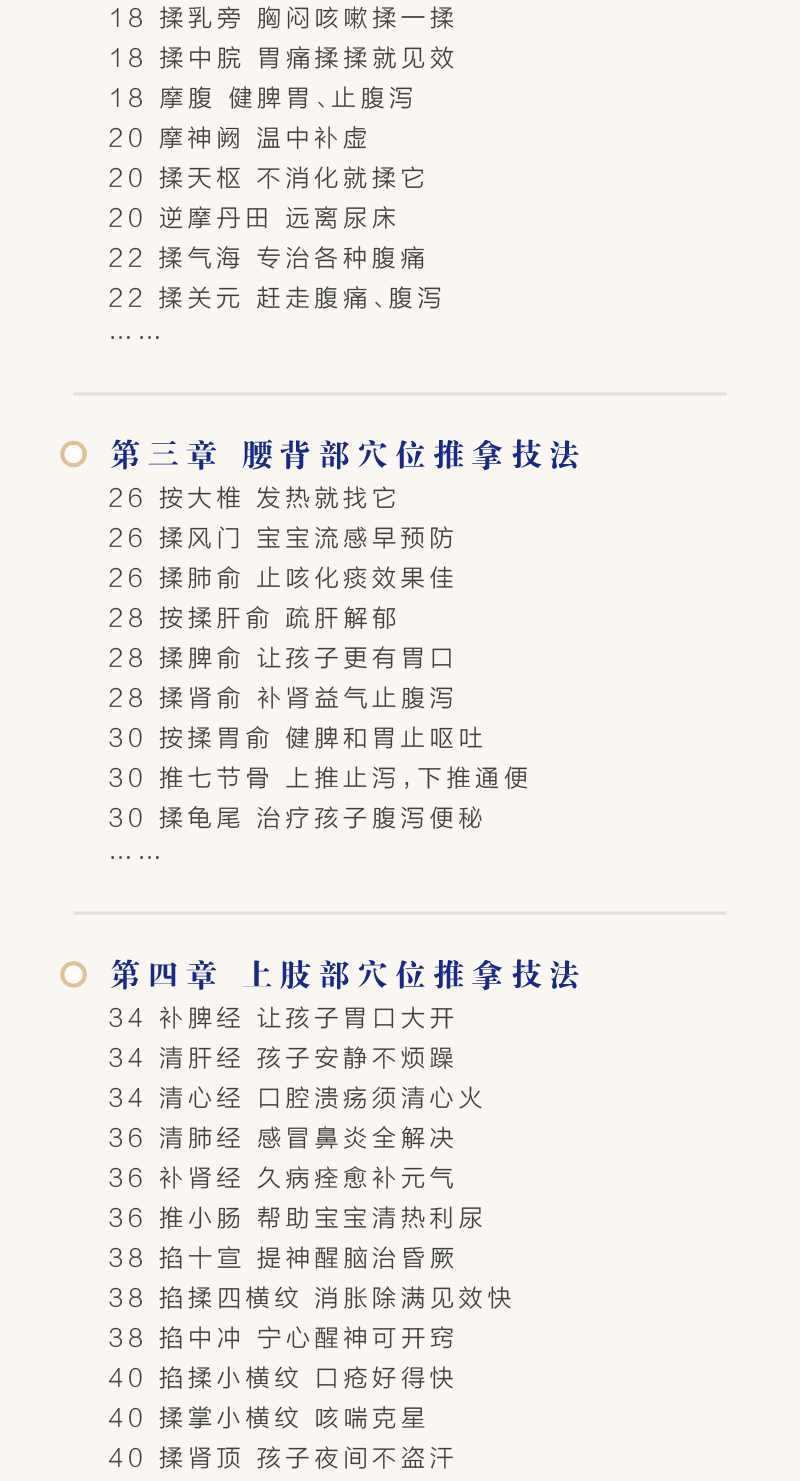 还有真人图片、二维码视频,由老师亲自演示穴位的推拿手法,标准到位、清晰明了,家长跟着做,不怕找不到穴位,不愁手法不对。