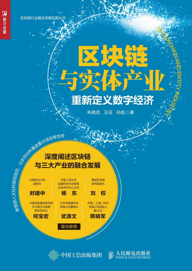 教育部人文社科规划项目、北京市社科基金重点项目等支持 深度阐述区块链与三大产业的融合发展 时建中 中国政法大学副校长 杨 东 中国人民大学金融科技与互联网安全研究中心主任 刘 权 赛迪区块链研究院院长 何宝宏 中国信息通信研究院云计算与大数据研究所所长 武源文 北京宏畅通科技有限公司董事长 蒋晓军 烨链(上海)科技有限公司创始人兼CEO 共同推荐